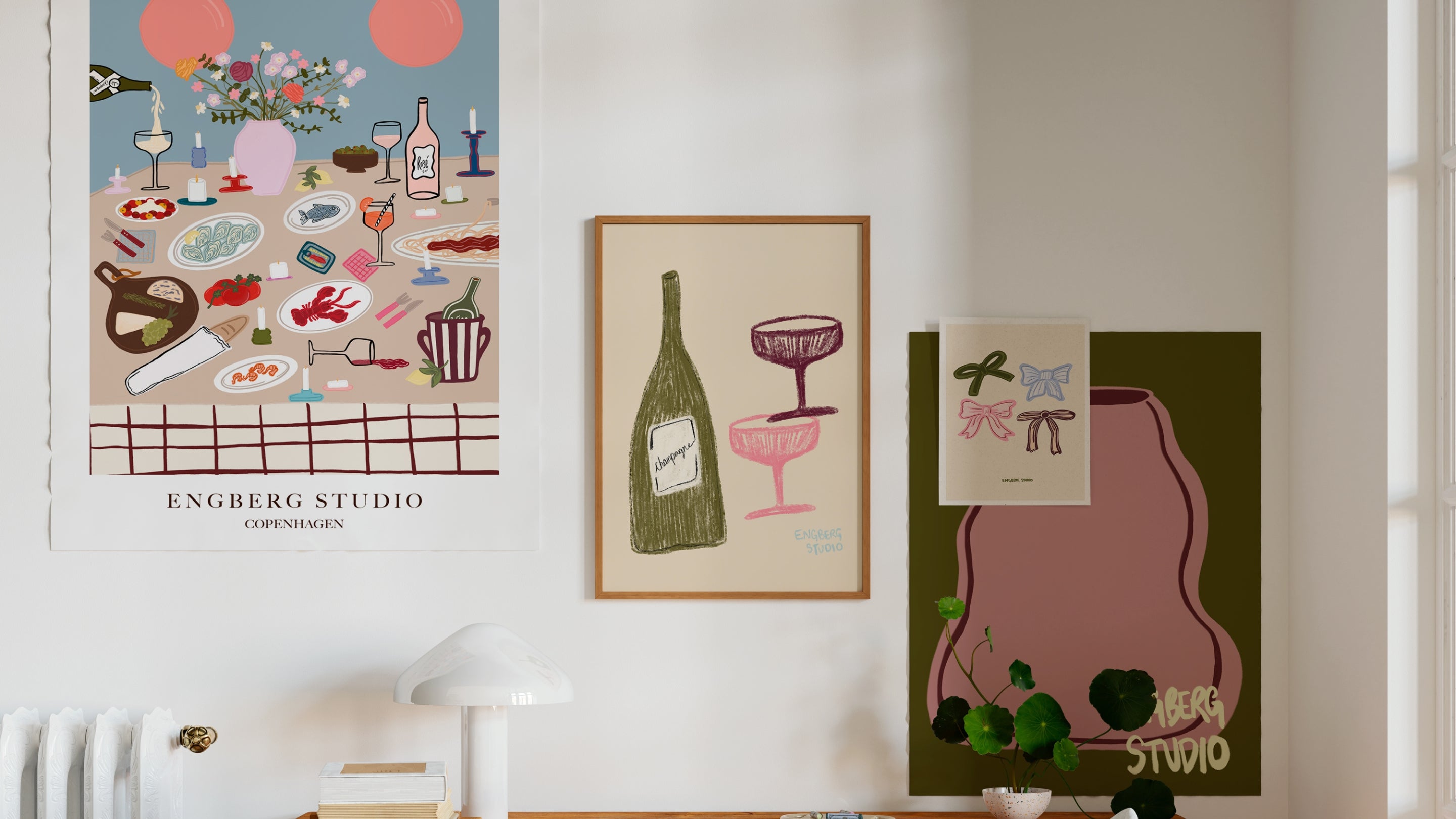 Each poster features abstract silhouettes that will sure to bring a POP of color - from checkerboard vases to oversized wine glasses - set against vivid backgrounds. Designed with a modern eye, these prints make a strong visual impact whether hung solo or styled in a gallery wall.
